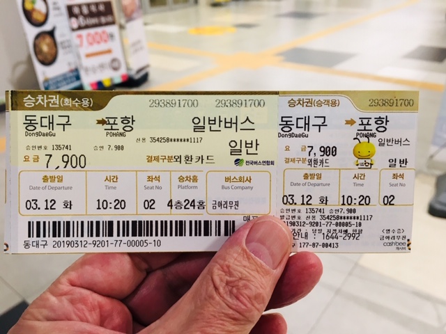 こちらから浦項(ポハン)まで約1時間のバス旅をしました。