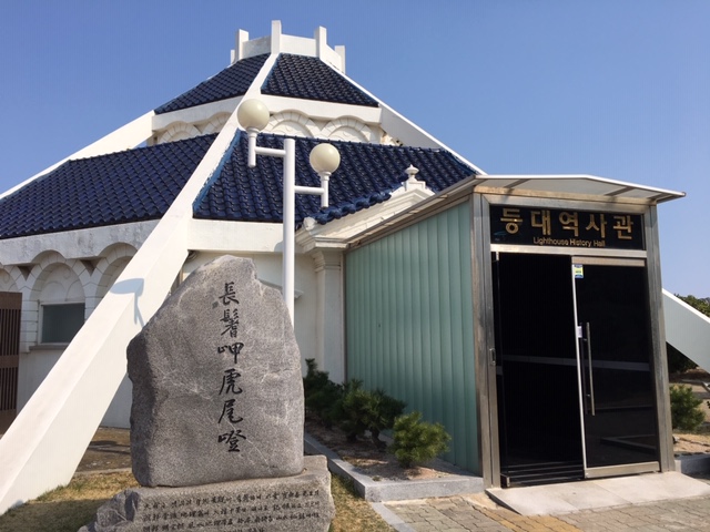 朝鮮半島の最東端、朝鮮半島の地形をトラに例えれば尾の部分に当たる「虎尾串」にあります。日露戦争に勝利した日本が大陸への足掛かりを固めるために朝鮮半島へ灯台建設を進め、当灯台は1908年11月に竣工、12月に点灯したといいます。長さは26.4メートル、八角形で、フランス人設計・中国人施工。