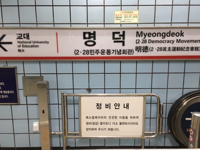 大邱都市鉄道1号線の駅で、市内のやや南、大邱駅から数えると7つめの駅です。