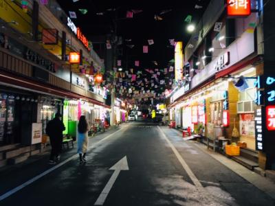 「アンジランコプチャン通り」にあるホルモン焼きのお店。親切なお店の人が丁寧に焼いてくれました。