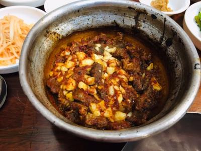 大邱の「カルビチム」は長時間煮込んだ骨付きカルビを、唐辛子粉、にんにく、生姜などを混ぜ合わせたタレで注文が入ってから味付けし蒸した料理です。ニンニクがゴロゴロ入りかなりスパイシーな料理ですが美味い。