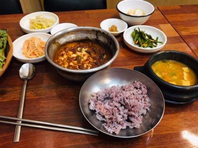 一人旅でしたので、この手の店では2人前以上を注文しなければならないという韓国ですが、思い切ってセット(小)を選択しました。
