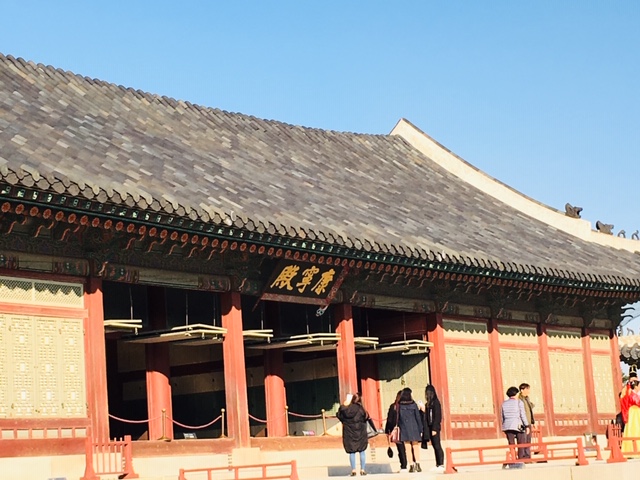 勤政殿は、1395年に景福宮を創建したときに、最初に建てられた建物で、文禄の役に燃えてしまったものを1867年に再建したものです。
