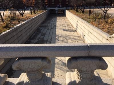 入場券を提示して「興礼門」を過ぎ、少し進むと右側にある石の橋が「永済橋」で、景福宮の禁川橋です。宮殿の中で禁川は、国王が居所している神聖な領域である宮殿と外の世界を分離する意味を持っています。