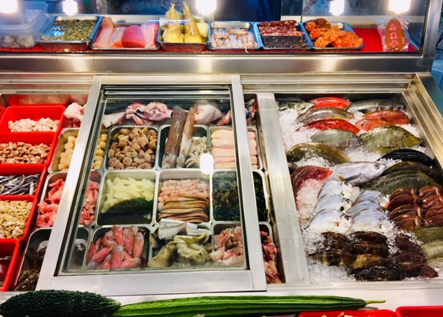 ショーケースの食材を指差して、自分の好みの調理法でオーダーするという仕組みです。全て新鮮。味付けも良く、また行きたいなぁ。- 旅行時期
