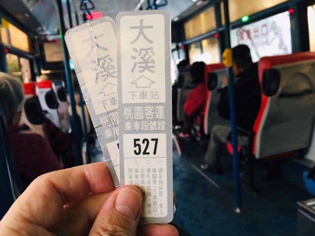 桃園駅近くにある桃園客運バスターミナルから5096番バス「大渓行き」に乗って行きました。1時間15分ほど掛かります。料金は37元。