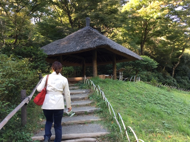 東屋風の休憩所で、普段は、やぶ蚊が出るためかあまり人は居ませんが、今回は花札に興じる中年のご夫婦がいました。- 旅行時期