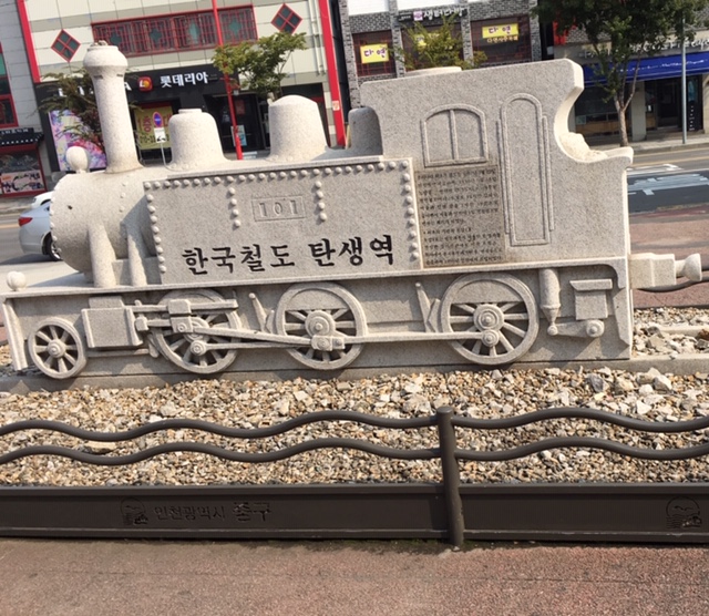 仁川自由公園のマッカーサー将軍像横から階段を降りたところにありました。