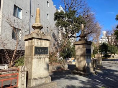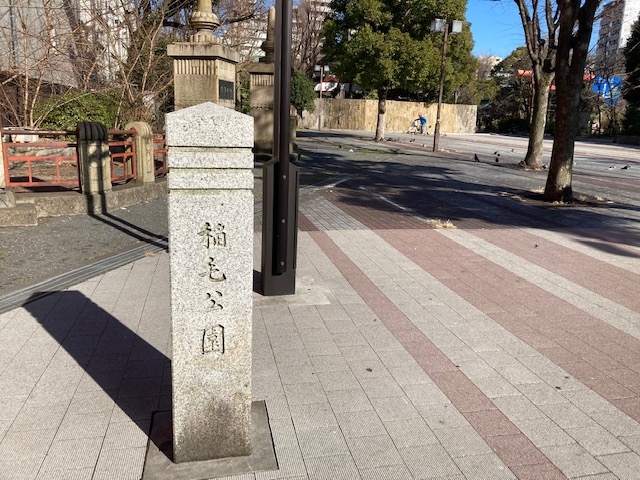 川崎市役所近く、国道15号線沿いに川崎宿の鎮守である「稲毛神社」がありますが、その隣に稲毛公園があります。この公園に「旧六郷橋親柱」があります。江戸時代後半には、江戸を守る意味から多摩川には橋が架けられず、明治になってから六郷橋が渡されます。何代かの橋は流され流失しますが、大正14(1925)年、「旧六郷橋」が架けられ、昭和59(1984)年に現在の橋に架け替えられるまでの約60年間、「陸路の帝都の門」として活躍し川崎の発展を支えました。