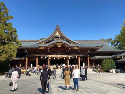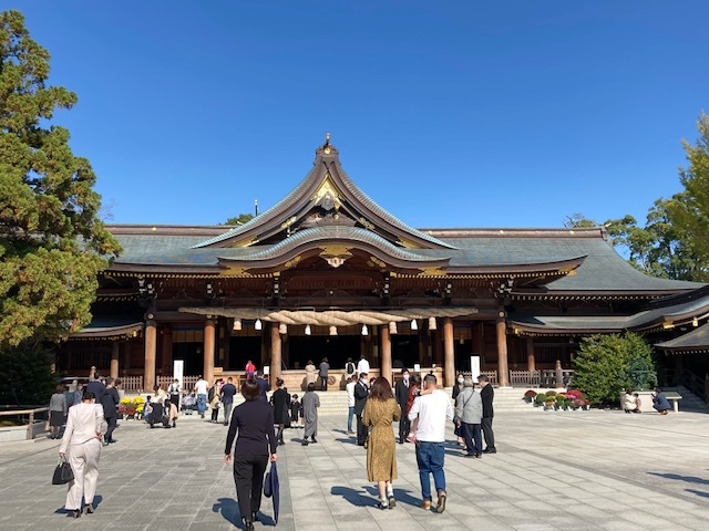 2021年11月、コロナの緊急事態宣言も解除され、行楽の秋という事もあって久々に参拝しました。自家用車で出かけました。道路は大渋滞で11時近くに着きましたが、無料の駐車場は何とか第三駐車場に停めることができました。