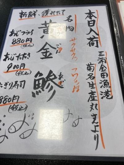 • ソレイユの丘に行ったあと、ランチで立ち寄りました。「黄金アジ」絶品です!