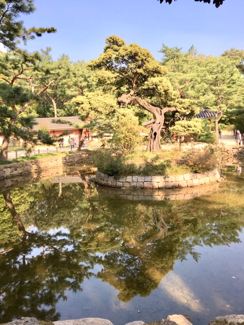 「外大門」から入場し、三道(サムド)を進むと右側にある池です。