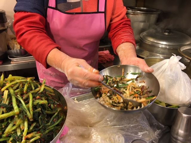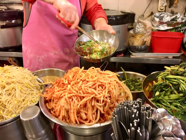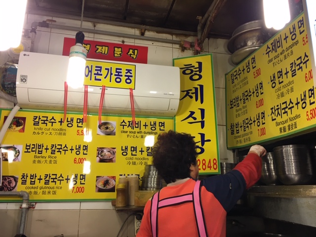 場所は、地下鉄4号線「会賢」駅の5番出口を出て南大門市場メインストリート入ってすぐ、「ハナロ眼鏡」というメガネ屋さんを過ぎてすぐ左の狭い路地にあります。最近、出入り口にビニールで戸のようなものが作られました。