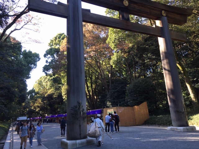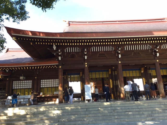 明治神宮の拝殿・本殿は、手前から外拝殿・内拝殿・本殿という並びになっていますが、私たちが参拝できるのは外拝殿の前であり、本殿までは見ることができません。