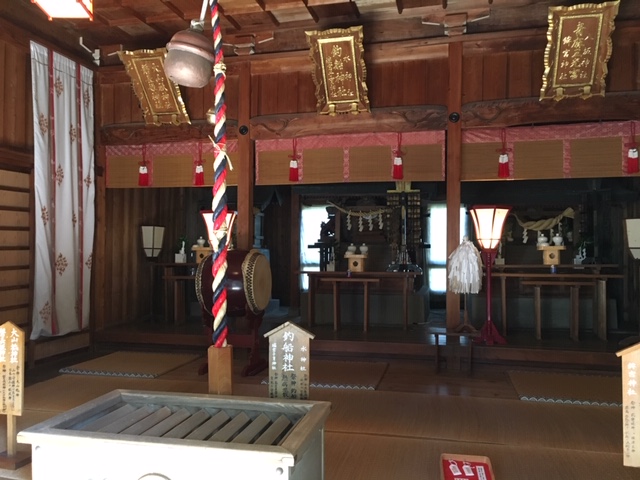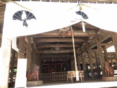 元の社殿は、明治四年(1871)に最後の藩主十六代豊範によって創建されましたが、第二次大戦で焼失してしまい、現在建つこの社殿は、昭和四十五年に再建されたものです。スッキリして綺麗な社殿です。