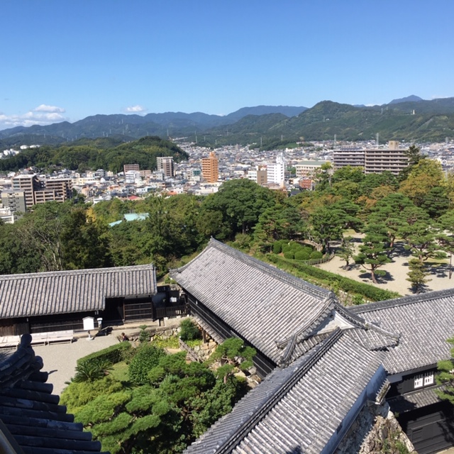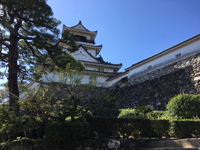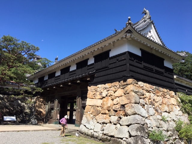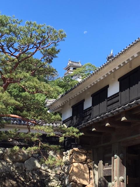 慶長年間に創建され、1663年(寛文3)に崩壊したのを翌年に再建したものと伝わり、重要文化財。天守と大手門(追手門)がそろって現存している城は珍しく、高知城、弘前城、丸亀城の3城しかなく、追手門前から天守閣を望めるのはここしかなく、有名な撮影スポットです。この日は、天守横に月も見えてました。- 旅行時期