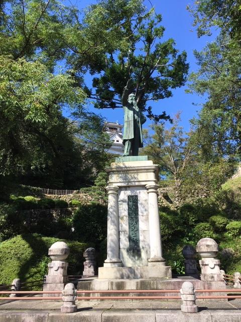 旧百円札にも描かれた自由民権運動の指導者「板垣退介の銅像」。