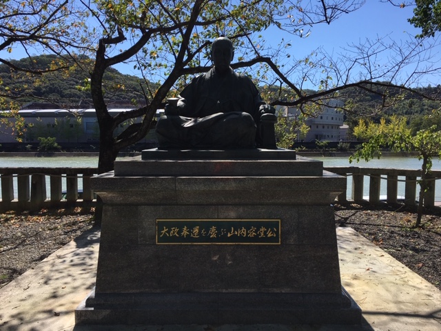 社殿に向かい合う形で「大政奉還を慶ぶ山内容堂公」の銅像があります。- 旅行時期