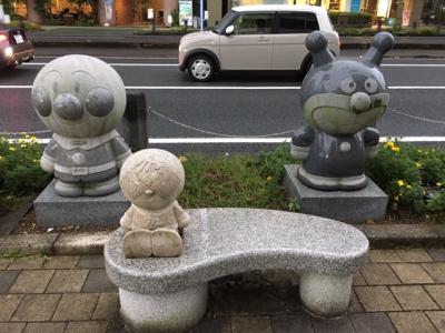 高知駅からはりまや橋や商店街方面にむかう「はりまや通り」沿い右側に、アンパンマンの石像があります。