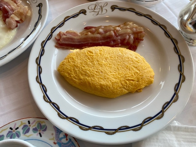 コロナの影響からかメニューはセットのみで、飲み物(オレンジジュース、グレープフルーツジュース、トマトジュース)、卵料理(フライドエッグ、スクランブルエッグ、プレーンオムレツ)、添え物(ハム、ベーコン、ソーセージ)を選ぶことが出来ます。