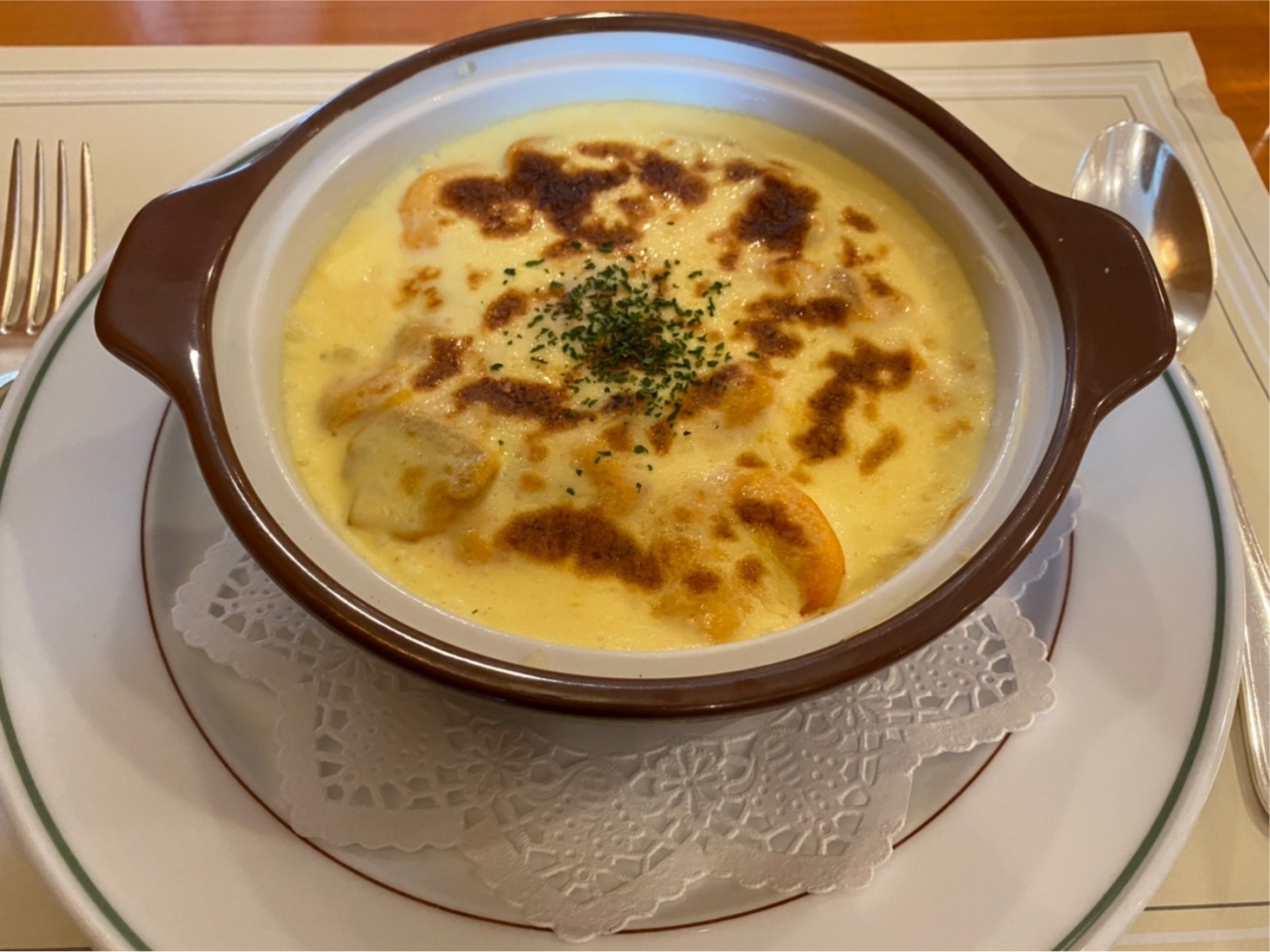 このホテルニューグランドから広まった洋食には、「シーフードドリア」「スパゲッティ ナポリタン」 「プリン ア ラ モード」があります。せっかく泊まりに来たのだから、とランチをいただきました。