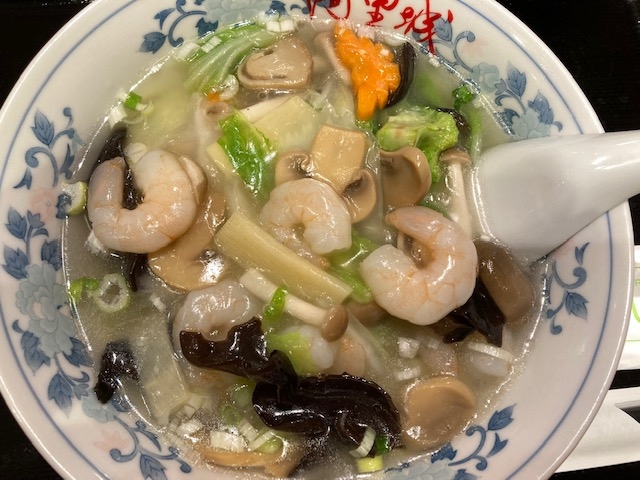 私は「担子麺と半炒飯」、家内は「海老の塩つゆそば」でした。