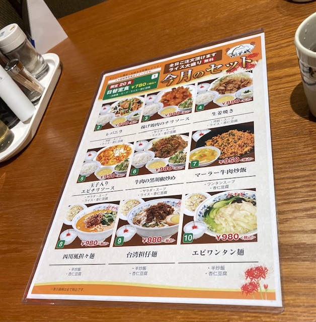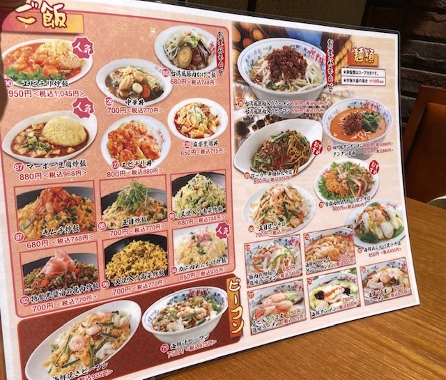 台湾風のメニューもあります。コロナで行けないので雰囲気味わいました。
