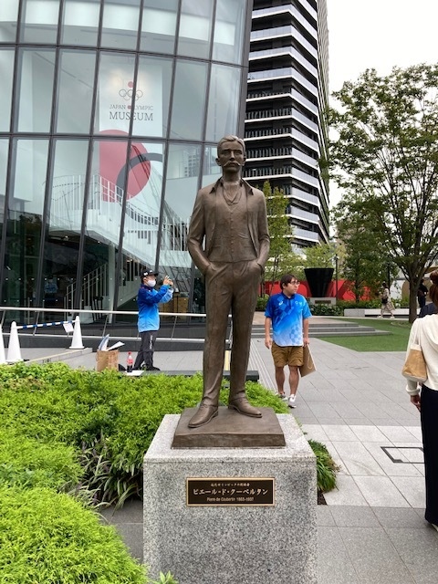 広場には幾つかのオブジェがあります。これはクーベルタン男爵像や五輪のオリンピックシンボルなど。