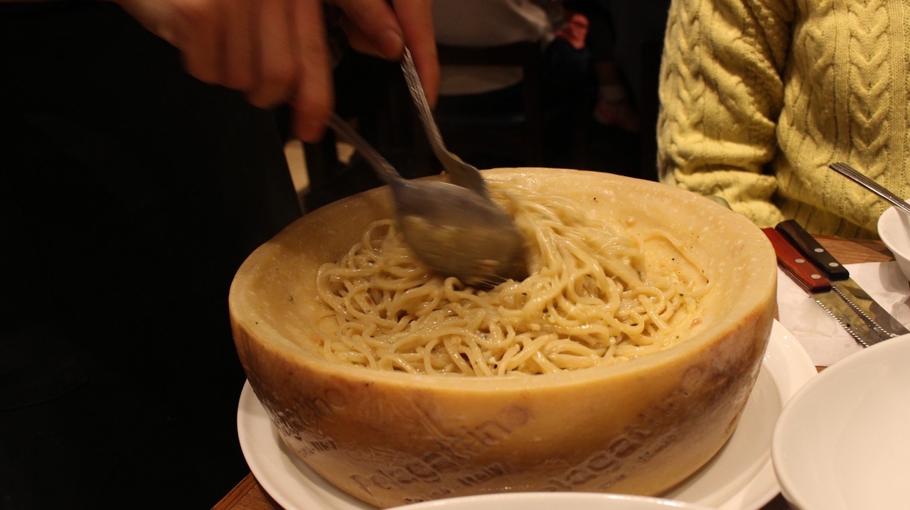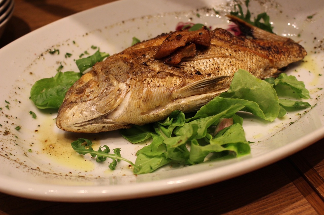魚介のアヒージョ、サラダ、燻製チーズのマルゲリータ、鮮魚のラルド焼、チーズの器で作った生パスタなど大宴会になりました。