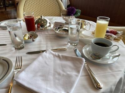神奈川県民限定の宿泊プラン「ゆったり24時間STAY」は朝食付。ルームサービスかタワー館5階「ル・ノルマンディ」から選択できますが、レストランを選択しました。