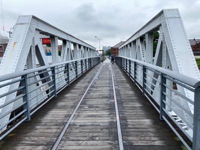 赤レンガ倉庫からほど近い運河に架かります。元々は貨物線(横浜臨港線)の鉄道橋でした。