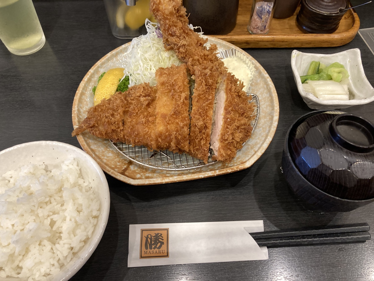 クチコミで皆さんが推している特上ロースと海老フライ一本付けました。2300円。確かに美味かった。もう少し脂がギトギトしたロースらしいロースがホントはいいんだが・・・。上品です。- 旅行時期