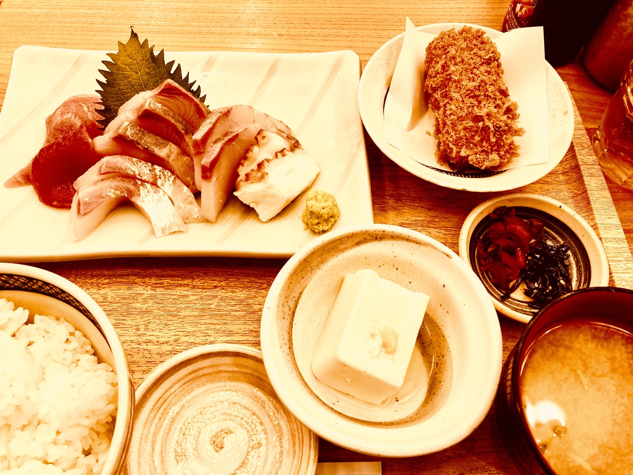 私はお刺身定食、家内が海老フライ&ホタコロ定食。美味しくいただきました。
