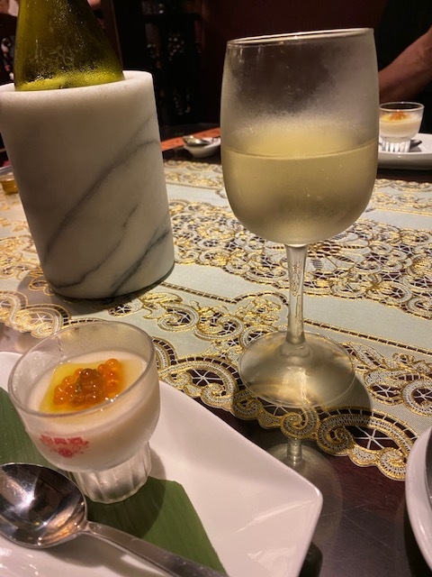 「シェフの特選季節の前菜盛り合せ」から始まって「フカヒレ姿の醤油煮込み」「オマール海老の自家製ロブスタービスクソース炒め」などなかなかの高級食材も頂けました。