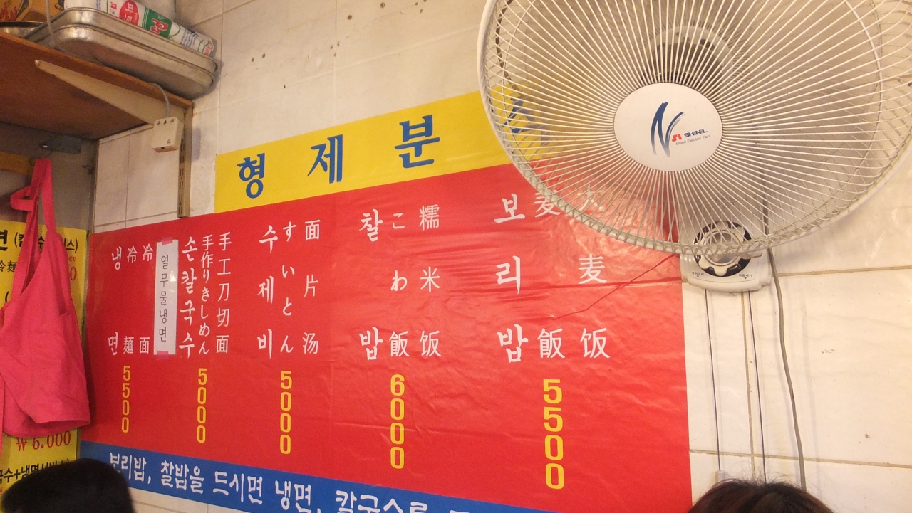 ビビンバ、クッパ、キンパ、チゲ、冷麺などなどメニューは豊富です。地元の若者はトンカツやチキンライスみたいなものを注文していました。