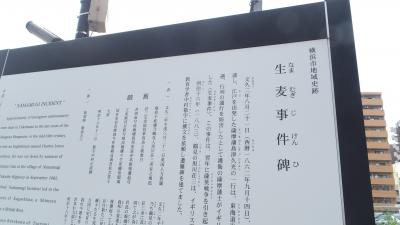 「生麦事件」は、1862(文久2)年、この地の旧東海道において、薩摩藩主島津茂久(忠義)の父・島津久光の行列に騎馬のイギリス人・アメリカ人と行き会い、道を譲らないことを原因として薩摩藩士が切り付け、殺傷(1名死亡、2名重傷)した事件です。