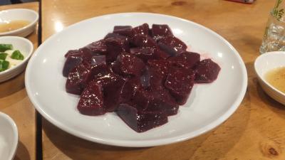 今や日本では絶対に味わえないユッケ、生レバー。超新鮮でした。