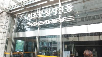 場所は、地下鉄1・2号線「市庁」駅2番出口を出てまっすぐ進み、最初の角を右に曲がると「徳寿宮トルダムキル」という通りに入ります。少し行き、1つ目の角の左にある緩やかな坂を登ると、「ソウル市庁西小門(ソソムン)庁舎」があります。