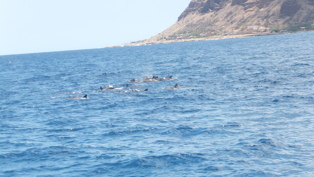 「ハワイアンスピナードルフィン(ハワイアンハシナガイルカ)」の群れは25~35頭ほど。人生観が変わるほどのすばらしい青い世界でした。