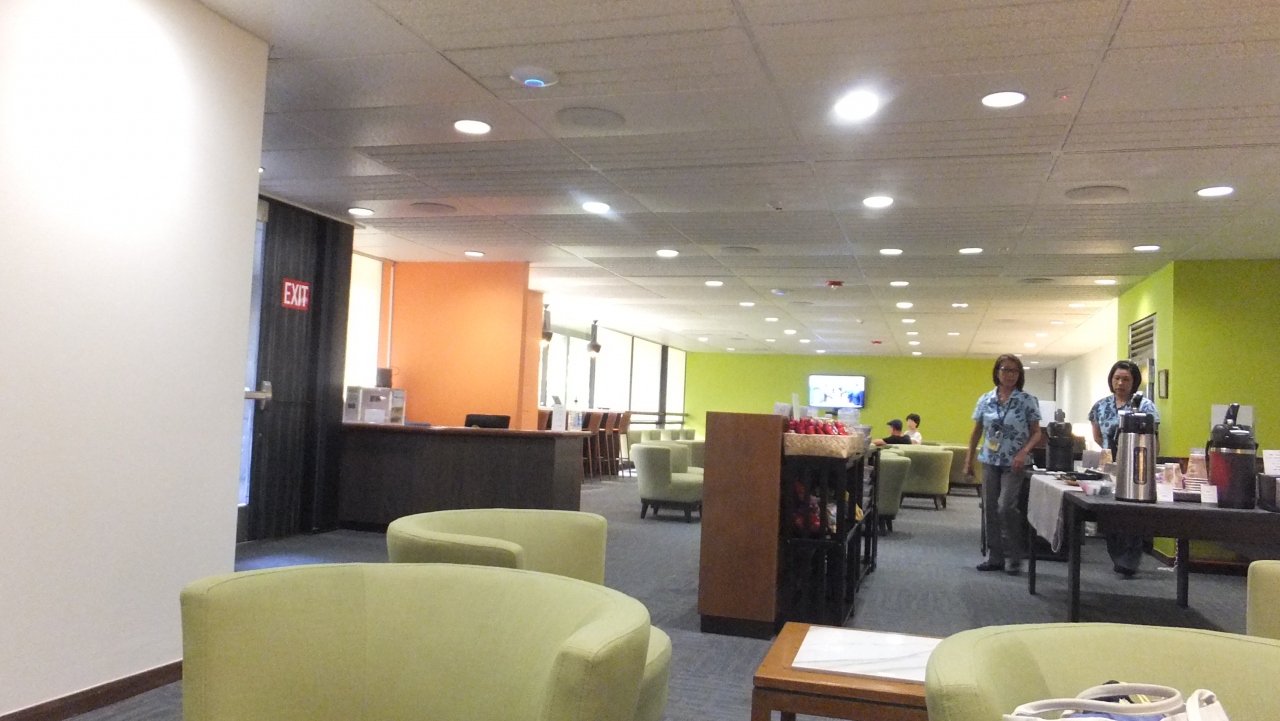 HISがホノルル空港に設置している「レアレアラウンジ」。旅行会社で唯一、ホノルル空港出国ゲート内にオープンさせた専用ラウンジだそうです。
