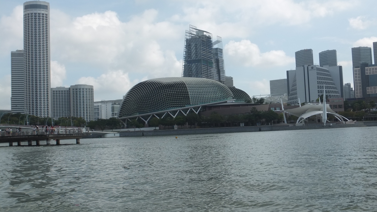 シンガポールに到着した日に夜景を、翌日はダックツアーの船上から眺めました。シンガポール川を挟んだ対岸には、マーライオン公園があります。
