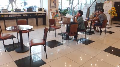 フードコートには、「本場香川 宮武讃岐うどん」「リンガーハット」「フレッシュネスバーガー」「洋丼屋ONE BOWL」「ぼてぢゅう屋台」「寿司 TATSU SUSHI」「カフェベネ」などがあります。他のターミナルのレストランよりは、全体的には価格も安めです。