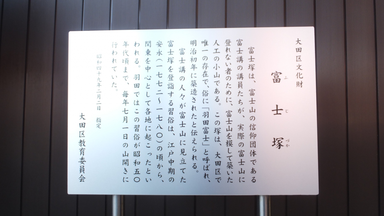 これは富士山に憧れた当時の富士講の人々がその姿を模して造った築山で、大田区の文化財に指定されています。- 旅行時期
