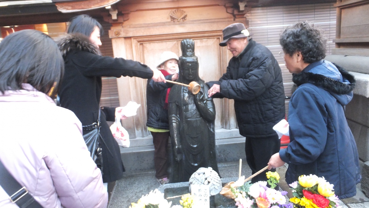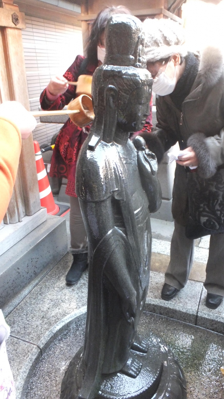 聖観世音菩薩像に水をかけ、自分の悪いところを洗うと治るという「洗い観音」には、今日も長蛇の列でした。- 旅行時期