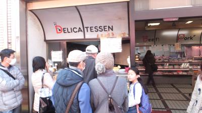 ウォーク参加者の割引・特典では、普段1枚100円のメンチカツが50円(1人2枚まで)でしたが、大行列で、フライを揚げるのが追いつかず、注文して揚るのを待ってるような状態でした・・・。