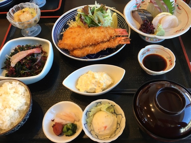 お刺身付のあこや御前(3,000円)を注文しました。さすがに伊勢エビのフライ。食べ応え満点です。お代り自由のタルタルソースも美味しいです。- 旅行時期