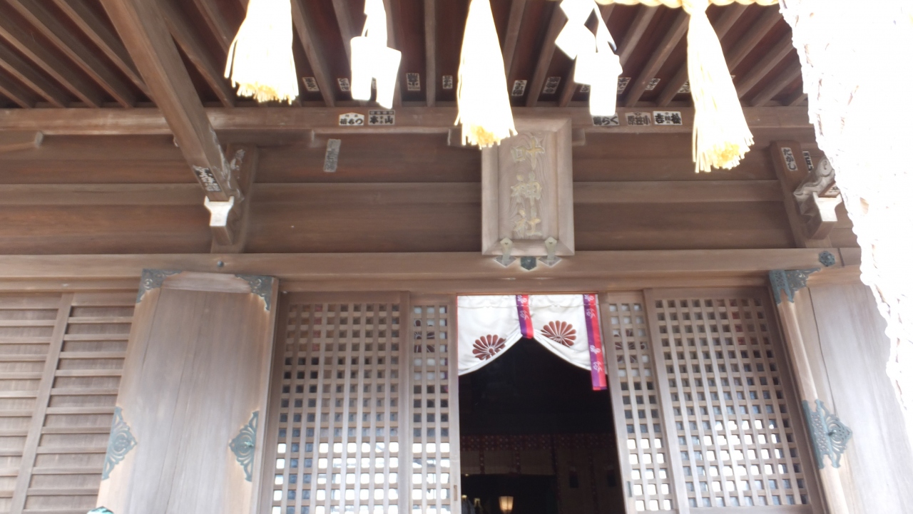神社境内の社務所裏に井戸がありますが、勝海舟が咸臨丸での太平洋横断前に、この井戸で水垢離(みずごり)をした後、この神社裏山(明神山)の山頂で断食をしたと伝えられています。