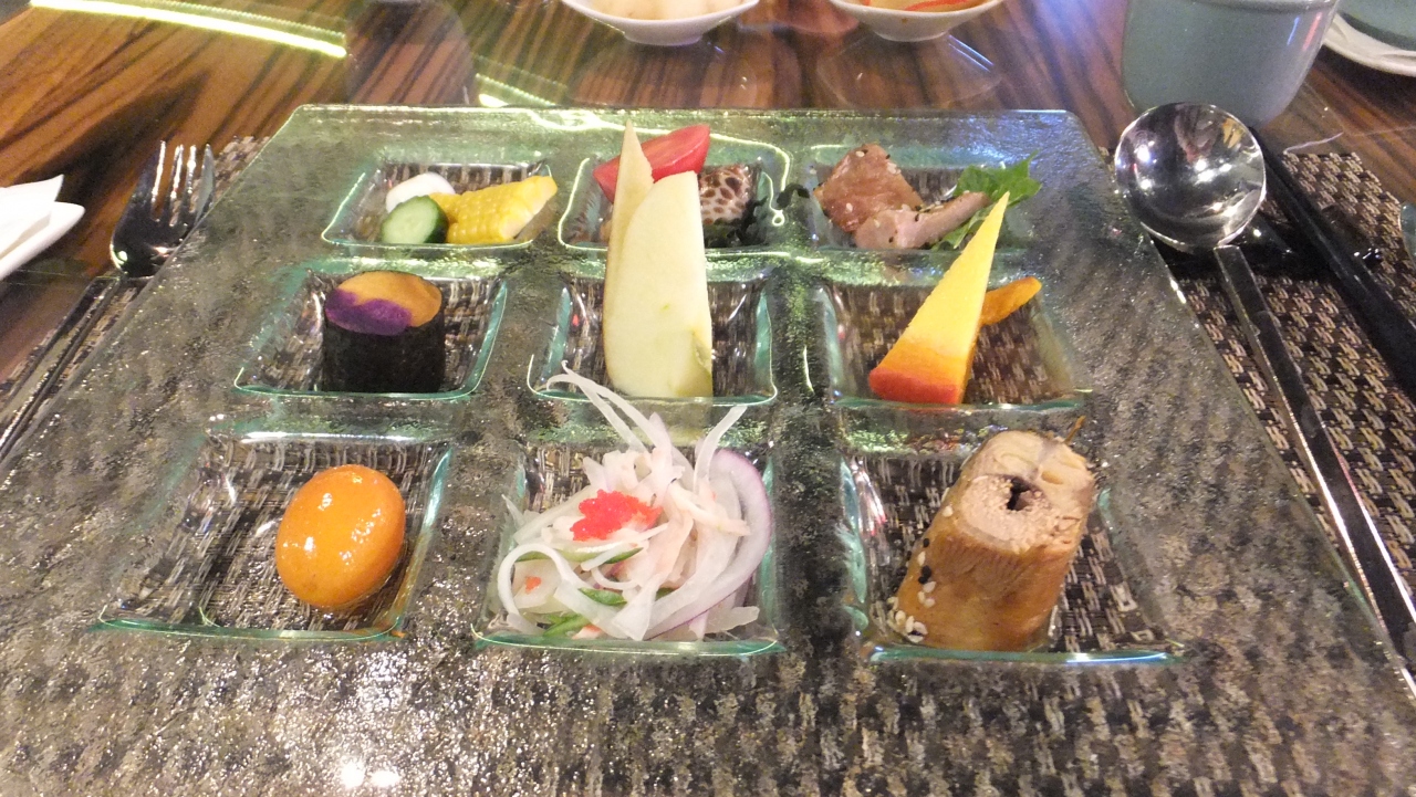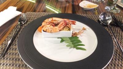 食材は、豊かな南投地方の農産品を応用したメニューということで、海鮮と肉類のミックスした、コース料理でした。