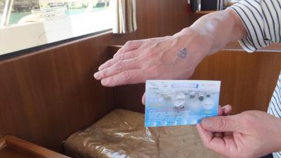 遊覧船は1日は乗降り自由で、手の甲にスタンプを押され、これが目印。