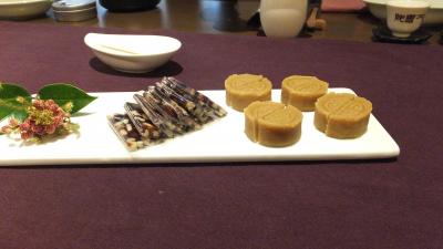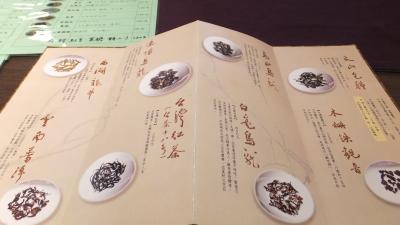 この日は、中国茶を楽しみました。係の人のお奨めで、「白毫烏龍」(東方美人茶)(400元)と「木柵鉄観音」(350元)にしました。